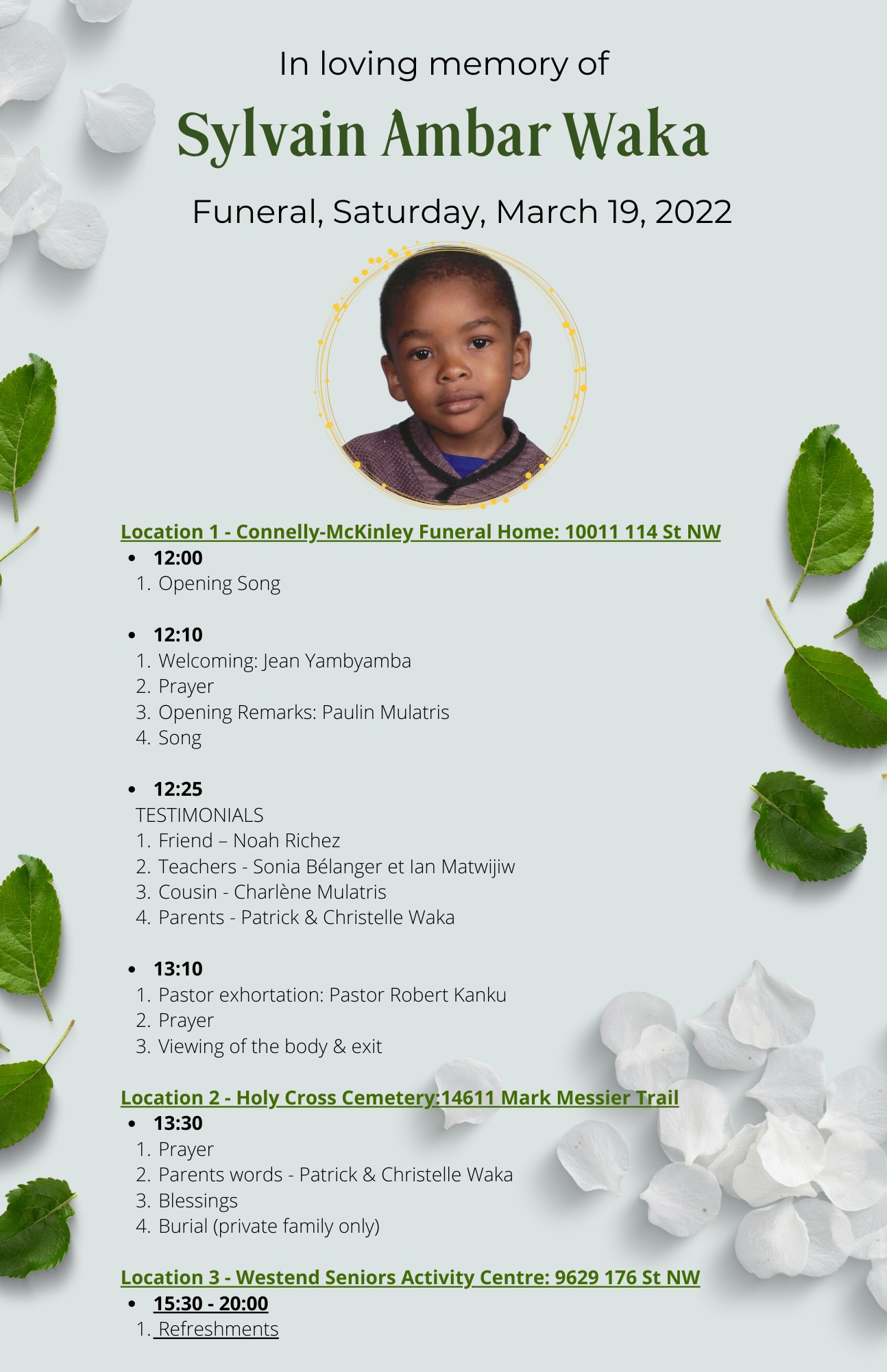 À la douce mémoire de Sylvain Waka, un élève de la 5e année décédé samedi le 12 mars 2022